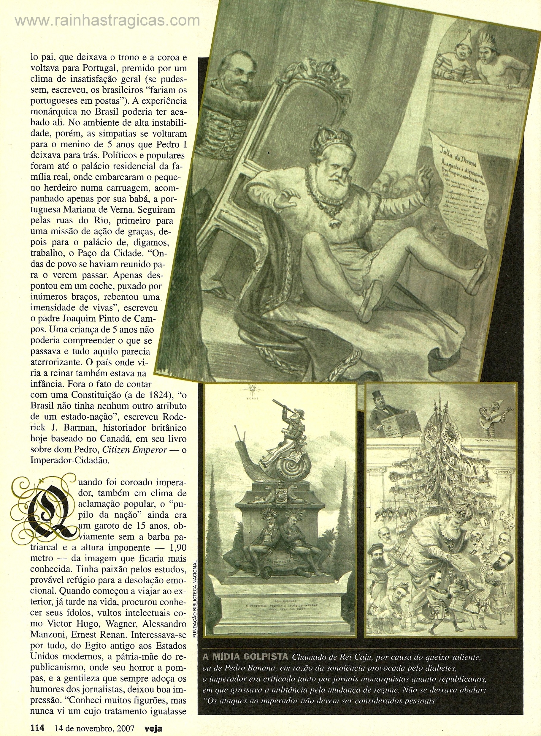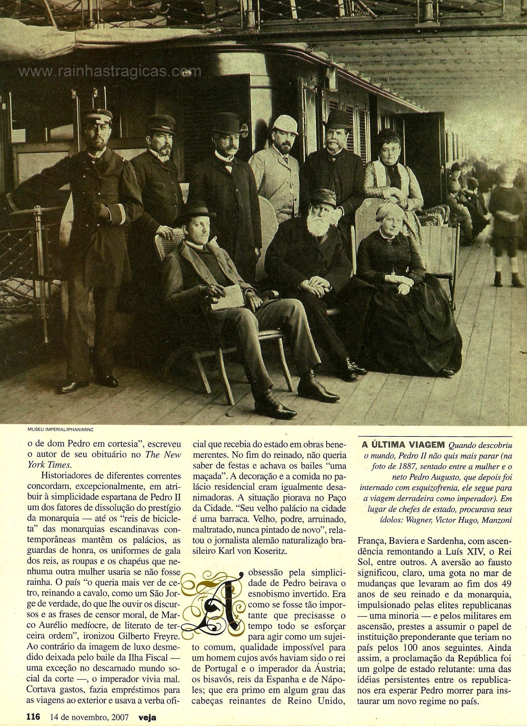 Na madrugada de 17 de novembro de 1889, a família imperial era expulsa do Brasil por ordem do recém-instaurado governo republicano. Com sua partida, findava-se um período relevante da nossa história, marcada por grande desenvolvimento econômico e cultural, assim como pela escravidão. A monarquia brasileira deixou para nós o legado de grandes personalidades, como é o caso de José Bonifácio, D. Pedro I e Dona Leopoldina. Dos quatro filhos do jovem casal de imperadores, nenhum foi tão importante quanto D. Pedro II, um homem que, apesar de ser filho de pai português e mãe austríaca, era um legítimo brasileiro, de corpo e alma. Quando ele subiu ao trono, em 1840, aos 14 anos, seu reino era um país atrasado em todas as esferas do poder. Quase 50 anos depois, já estávamos acompanhado a marcha do desenvolvimento em paralelo com as principais potências europeias. Contudo, a coroa era um fardo que este imperador dos trópicos jamais desejou. Certa vez, ele disse que preferia ser “professor ou presidente da república”. Apesar de ser um representante do regime monárquico, Pedro II nutria todos os ideias republicanos, conforme podemos observar na matéria “Coração de Presidente”, publicada pela edição nº 2.034 da revista VEJA.