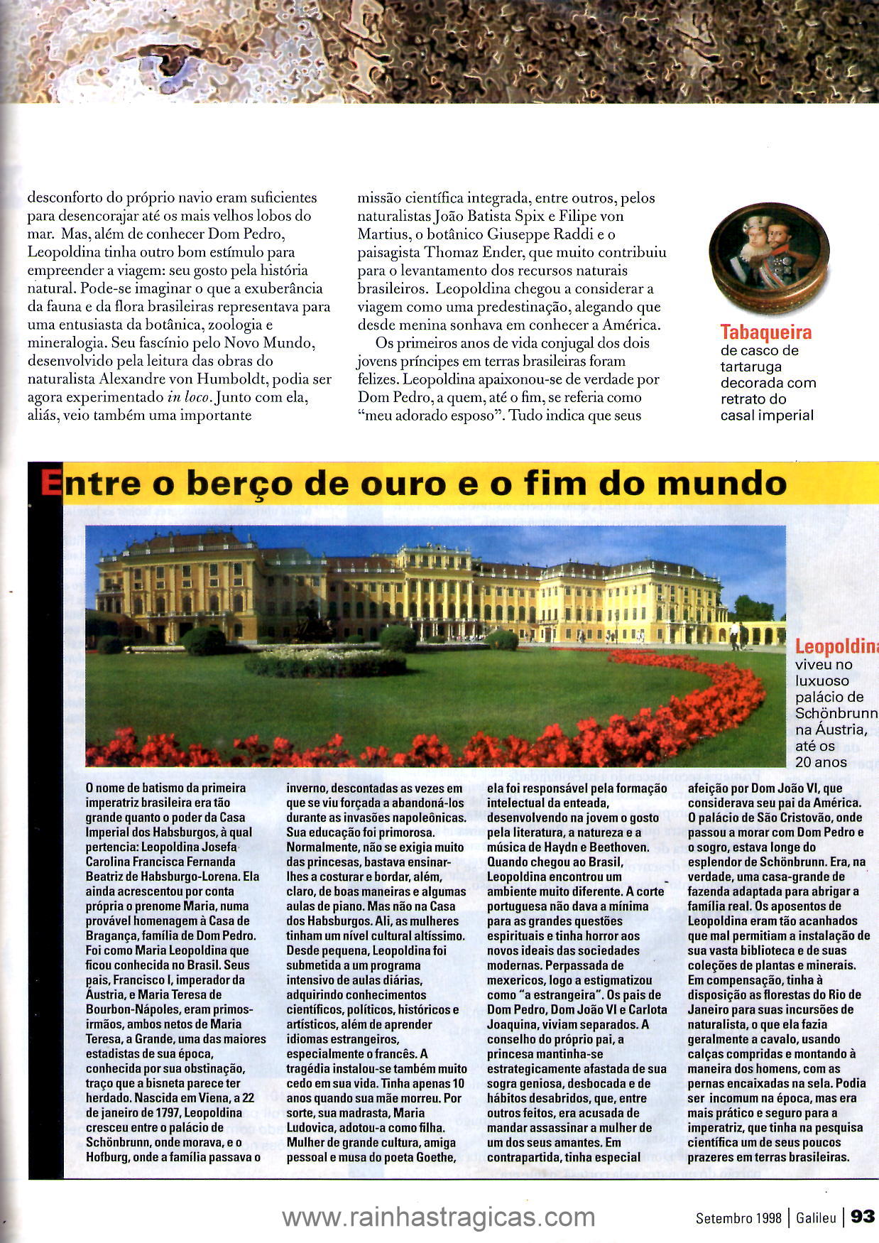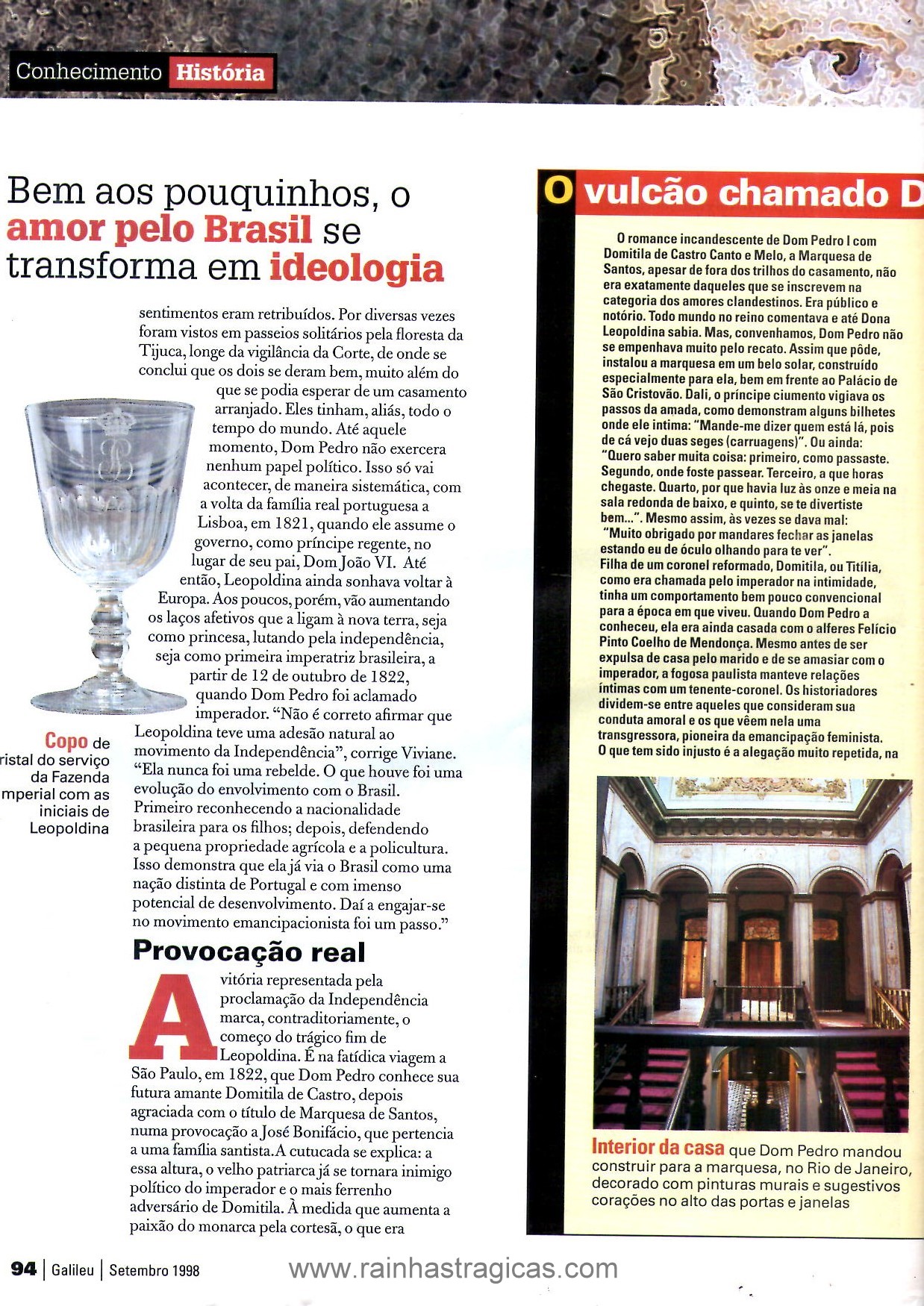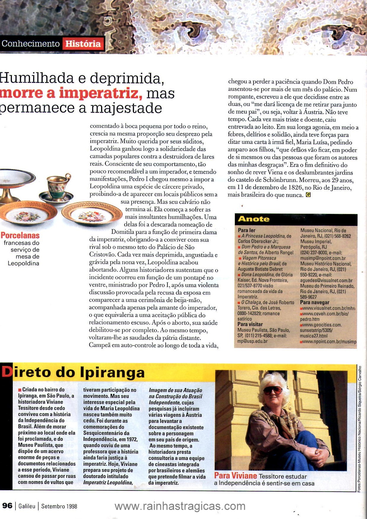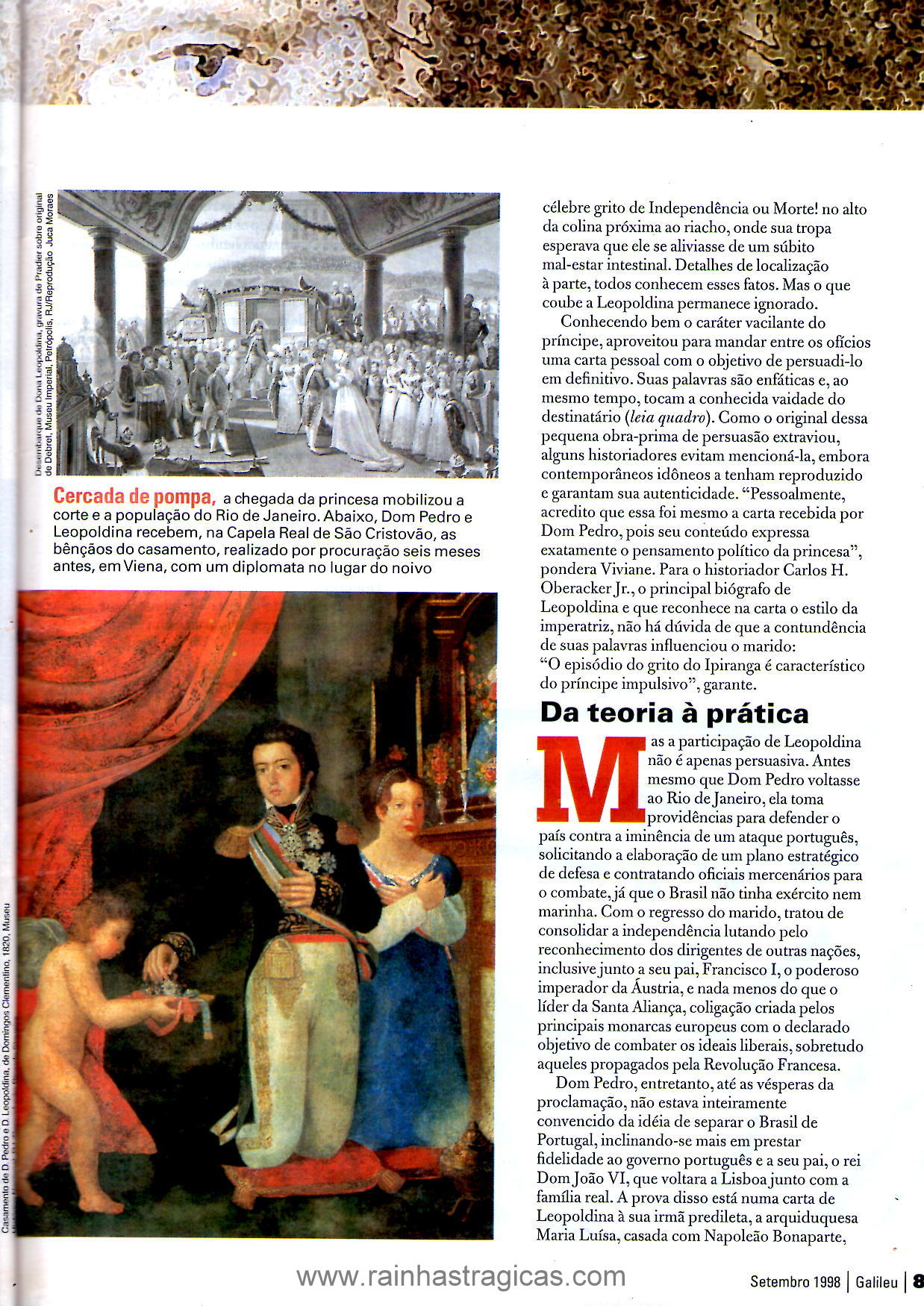 1. Na página 90 da matéria da Galileu há uma informação equivocada. A Princesa Francisca Carolina, filha de Leopoldina, não foi imperatriz da Áustria, mas sim esposa do Príncipe de Joinville, da França.