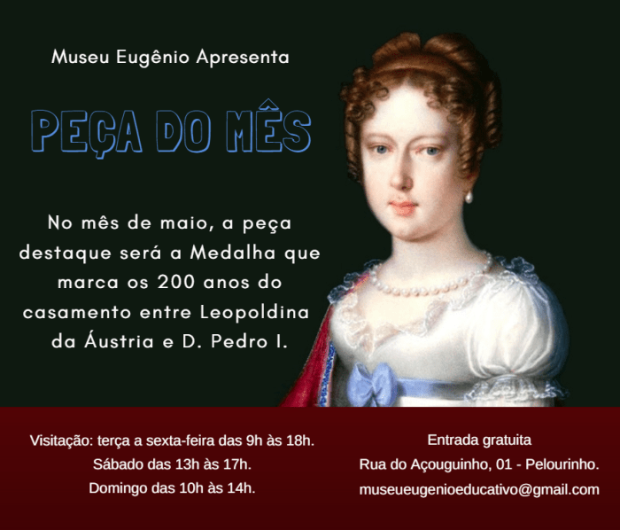 Gostaríamos de convida-los para a roda de conversa: “Museus e Histórias Controversas: Dizer o Indizível em Museus”, que ocorrerá durante a 15ª Semana de Museus em Salvador, onde estaremos discutindo, entre outros assuntos, sobre os 200 anos do casamento que mudou a História do Brasil: Pedro e Leopoldina. Irão compor a mesa a doutoranda e museóloga Eliene Dourado Bina, o historiador Renato Drummond Tapioca Neto, e Euler de Almeida Oliva, museólogo e curador das exposições temporárias do Museu Eugênio Teixeira Leal.