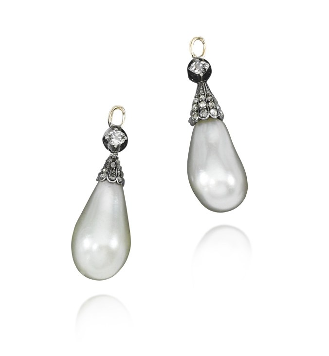 Um par de pérolas naturais, estimado entre US $ 30.000 e US $ 50.000. Destaque no Royal Jewels do leilão da família Bourbon-Parma na Sotheby’s Geneva, em novembro de 2018.