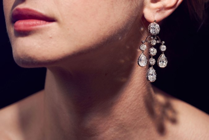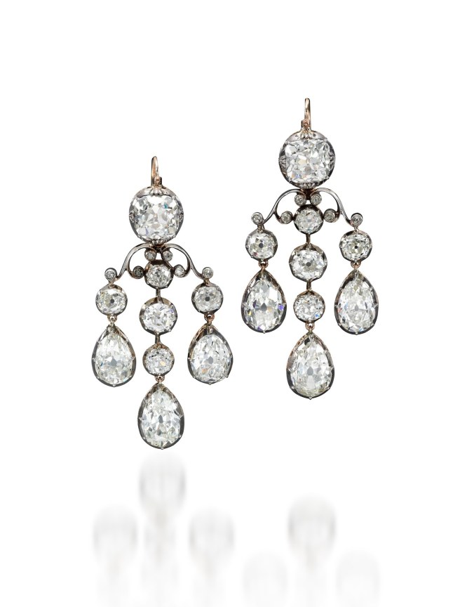 Um brinco de diamante, dado a Robert I por sua avó, Maria-Teresa de Sabóia, a duquesa de Parma, estimado entre US $ 150.000 e 250.000. Destaque no Royal Jewels do leilão da família Bourbon-Parma na Sotheby’s Geneva, em novembro de 2018.