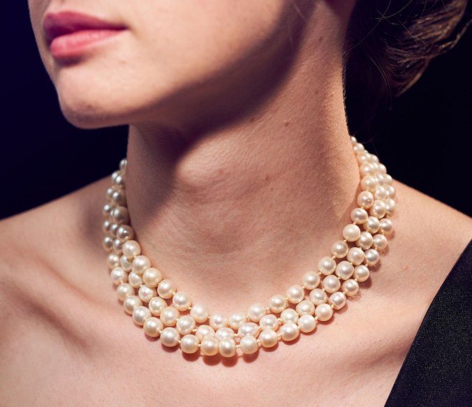 Um colar com diamante e 331 pérolas naturais, pertencentes a Maria Antonieta, rainha da França. Estimava entre US $ 200 mil e 300 mil. Destaque no Royal Jewels do leilão da família Bourbon-Parma na Sotheby’s Geneva, em novembro de 2018.