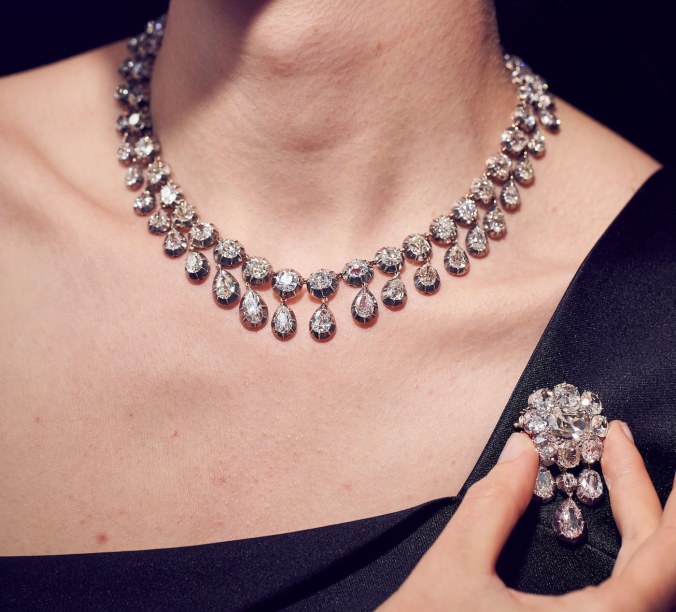 Famosa por seu vestuário extravagante e gostos expansivos, Maria Antonieta (arquiduquesa da Áustria e rainha da França entre os anos de 1774 e 1792), até hoje permanece como um ícone da moda para a cultura ocidental. Decapitada em 16 de outubro de 1793, sua cabeça ostentou em vida algumas das mais belas joias já fabricadas no continente europeu. Quando jovem, o amor da rainha pelas belas roupas e adereços ostensivos acabou por lhe criar uma péssima reputação, numa época em que a França passava por grave crise financeira. A imagem da soberana gastadeira, que escarnecia da fome e da miséria dos súditos foi bastante veiculada pela imprensa revolucionária, especialmente após o escândalo envolvendo seu nome e a aquisição de um gigantesco colar de diamantes, avaliado atualmente em 14 milhões de dólares. 225 anos após a execução da esposa de Luís XVI, algumas de suas preciosas gemas, que tantos problemas lhe causaram em vida, foram leiloadas em novembro de 2018, pela Sotheby’s Geneva, juntamente com outras peças que pertenceram à família Bourbon-Parma.