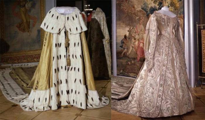 Vestido e manto usados pela czarina Alexandra Feodorovna da Rússia no dia de sua coroação, em 14 de maio de 1896.