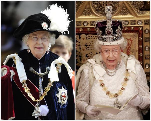 Assim como a Coroa Imperial de Estado, o Colar da Ordem da Jarreteira (uma das mais antigas do mundo) é uma das insígnias do poder de Elizabeth II. Confeccionada em ouro puro, a corrente do colar apresenta placas esmaltadas com um desenho de rosas, separadas por nós de ouro. Geralmente usado sob os ombros, a joia possui um pingente representando São Jorge, montado sob um cavalo brando e matando o dragão. Foi usado pela soberana durante a sua coroação, bem como nos dias de desfile de Ordem e nas aberturadas do Parlamento.