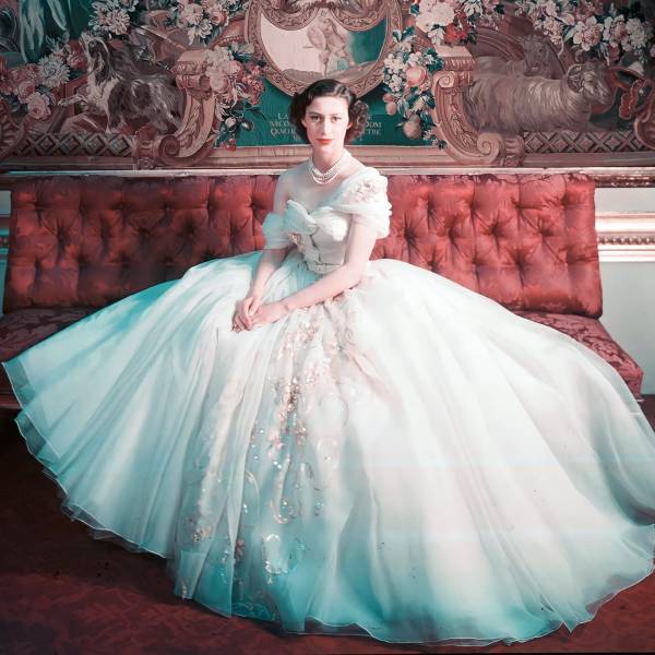 A princesa Margaret Rose usando um modelo Christian Dior, para as lentes de Cecil Beaton em 1951.