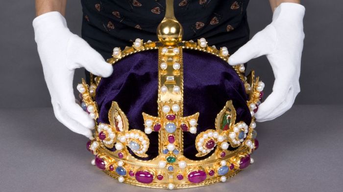 Réplica da coroa de Henrique VIII, exposta no palácio de Hampton Court.
