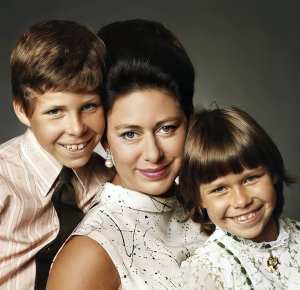 A princesa Margaret e seus filhos David e Sarah.