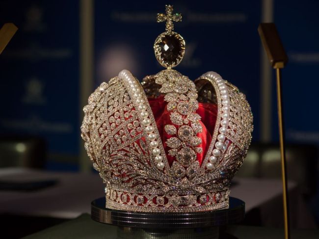Réplica da Coroa imperial russa, encomendada por Catarina II para sua coroação em 1762. Atualmente em exposição no Kremlin.