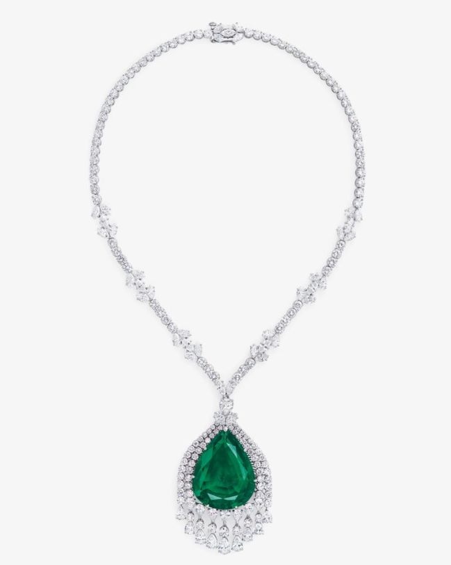 A esmeralda neste colar pertenceu a Catarina, a Grande, e fez parte da coleção imperial russa por mais de 100 anos. Foi vendido por $ 4 milhões na Christie’s.