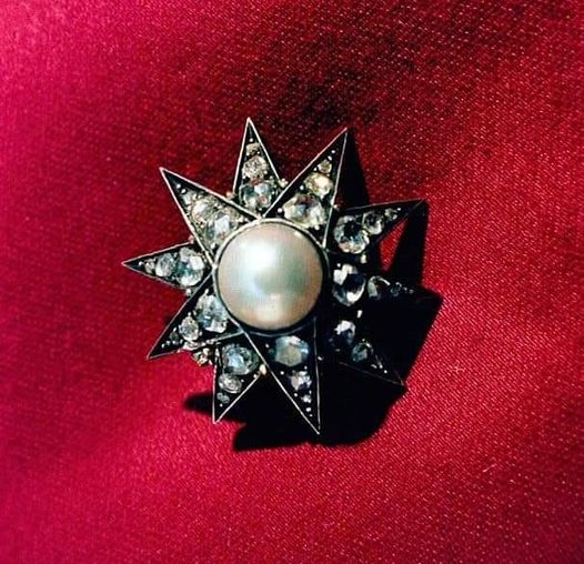 Uma das famosas estrelas de diamantes, que a Imperatriz Sissi utilizou para posar para o icônico retrato pintado por Franz Winterhalter. A soberana possuía 27 dessas estrelas, distribuídas ao longo de sua vida como presentes às suas damas de companhia. Em 1902, a arquiduquesa Elisabeth, filha do príncipe coroado Rudolf, usou algumas delas no cabelo em seu casamento.