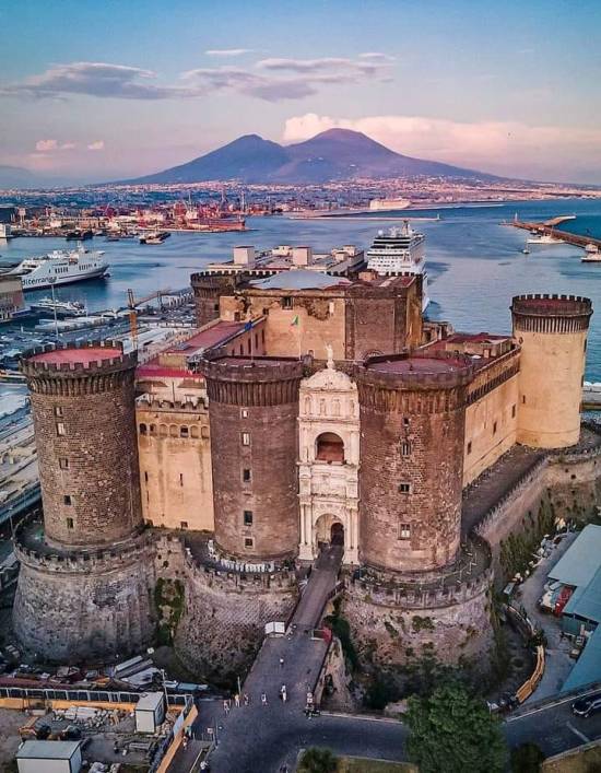 A beleza do Castelo Nuovo, em Nápoles. Fortificação erguida a partir de 1279, sob ordens do rei Carlos I de Anjou. Por séculos, foi uma importante residência real, especialmente durante o governo da rainha Joana I de Nápoles, que o transformou numa fortaleza. Depois da dominação aragonesa no século XV e dos subsequentes saques franceses, o local foi usado principalmente como arsenal de guerra. Ele só voltaria a ser ocupado pela realeza no século XVIII.