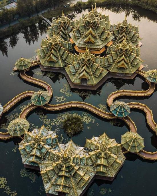 O belíssimo Pavilhão dos Iluminados, na Tailândia. Consta que teria sido construído em homenagem aos 500 monges que alcançaram o Nirvana, considerado o estágio de elevação divina no budismo.