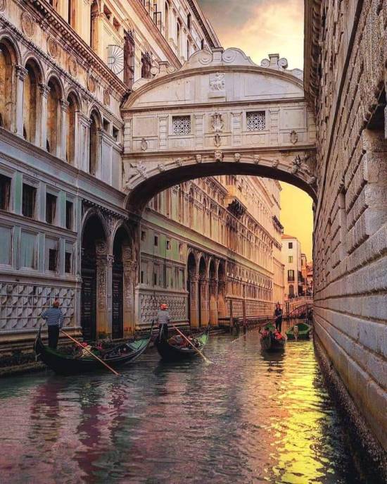 A famosa Ponte dos Suspiros, em Veneza. Construída no melhor estilo do barroco italiano, entre 1600 e 1603, ela se ergue sobre o Rio di Palazzo. Dizem que a ponte recebeu esse nome, pois, em tempos remotos, os prisioneiros que passavam por ela tomavam uma última lufada de ar do mundo exterior, antes entrarem na prisão do Prigioni Nuove. Hoje, é um dos principais pontos turísticos de Veneza.