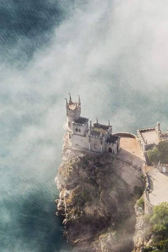O encantador castelo de Swallow’s Nest, na Crimeia. Construído em 1912, ele se ergue no topo do penhasco Aurora, 40 metros acima do nível do mar. Foi projetado pelo arquiteto russo Leonid Sherwood, para o empresário alemão Barão von Steingel.