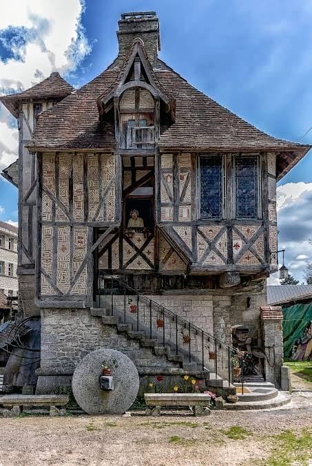 Uma casa construída em 1509 na Vila de Argentan, Orne, na França. Sua fachada ainda apresenta a estrutura original com mais de 5 séculos.