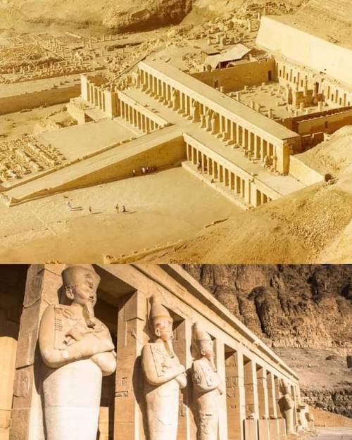 Templo Mortuário da rainha Hatshepsut, falecida em 1458 a.C. Considerado um dos monumentos mais impecáveis do Antigo Egito, sua função exercia o mesmo efeito das pirâmides: gloficar a imagem do faraó, nesse caso, uma mulher. Hatshepsut se proclamou faraó no século XV a.C. Com a morte de seu marido, o rei Tutmés II, a rainha passou a governar por seu enteado, que na época ainda era uma criança. Porém, quando este atingiu a maioridade, ela se recusou a ceder o poder e teve o apoio dos súditos. Seu reinado foi de um caráter inédito, pois até então só homens tinham ocupado o trono do Egito e agora uma mulher se tornava faraó. Nos 22 anos em que esteve à frente do Estado, promoveu a construção de grandes templos edificantes e levantou a economia do país. Após sua morte, foi finalmente sucedida por Tutmés III, que fez o possível para destruir a memória da madrasta. O Templo Mortuário de Hatshepsut, com suas inscrições e desenhos entalhados sobre a pedra, é um dos poucos vestígios sobreviventes da história de seu reinado.