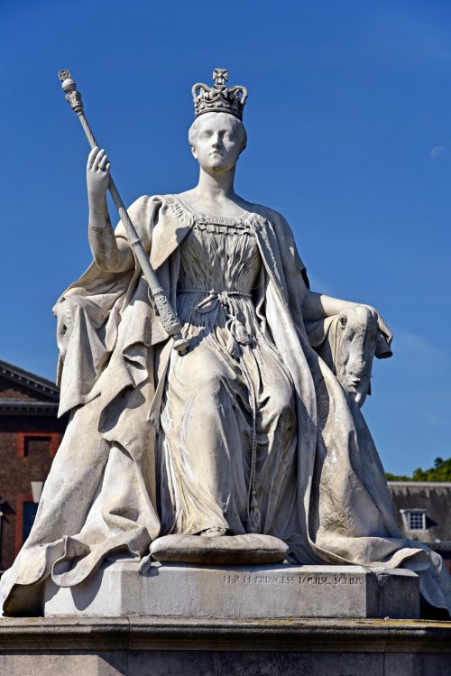 A estátua acima foi esculpida pela princesa Louise, quarta entre as cinco filhas da rainha Vitória. A princesa resolveu capturar uma imagem de sua mãe que representasse a ideia de grandeza que os britânicos faziam de si mesmos. Possivelmente baseada no retrato pintado por George Hayter, a estátua apresenta Vitória no momento mais importante na vida de um soberano: a sua coroação como soberana do Reino Unido. Finalizada em 1893 e erguida nas proximidades do Palácio de Kensington, onde a rainha viveu durante toda a sua infância, a obra era a corporificação do apogeu das políticas imperialistas da Grã-Bretanha, quando a nação já havia colonizado boa parte do continente africano e asiático. Quando Vitória faleceu, em 22 de janeiro de 1901, aos 81 anos, a Inglaterra era então a maior potência do mundo e seu rosto era o símbolo de uma Idade de conquistas e avanço tecnológico. 13 anos depois, a Primeira Guerra Mundial pôs um fim à chamada Era Vitoriana, inaugurando uma nova fase na Europa, inclusive para a monarquia britânica, cujo império aos poucos foi se desfazendo em meio ao caos econômico resultante do conflito. Atualmente, estátuas como essa têm sido alvo de protestos em várias partes do mundo, especialmente no Canadá, onde as políticas neocoloniais do século XIX ceifaram as vidas de milhares de pessoas.