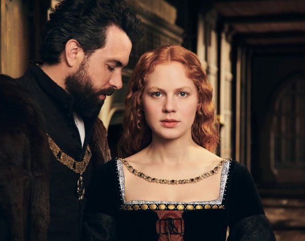 Tom Cullen e Alicia von Rittberg como Thomas Seymour e Elizabeth.