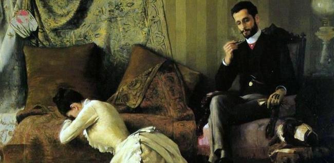 As masculinidades de dominação teriam como objetivo, segundo o autor, distinguir os chamados “homens de verdade” daqueles classificados como covardes, medrosos, afeminados e poltrões, criando assim hierarquias de subordinação tanto para as mulheres (divididas assim entre casáveis e não casáveis), como também perante outros sujeitos que não se encaixam no modelo binário masculino/feminino. Tela de José Ferraz de Almeida Júnior.