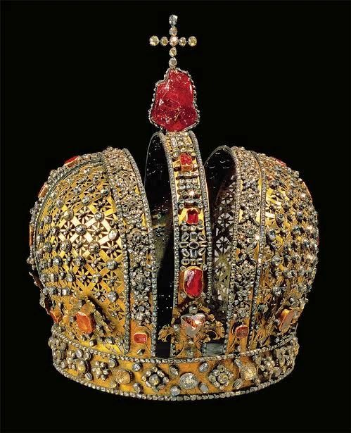A fabulosa Coroa Imperial Russa, símbolo definitivo da soberania dos czares, encomendada por Catarina por II em 1762 a Ivan Betskoy, seu conselheiro, para ser usada na sua cerimônia de coroação em 22 de setembro. Na descrição feita por Robert K. Massie: