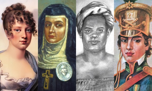 Ou seja, 1822 é apenas o ano de partida para uma série de bicentenários que ainda estão para serem comemorados. No caso da Bahia, o símbolo escolhido como representativo da independência não foi a figura do Imperador Cavaleiro ou do Patriarca José Bonifácio, e sim o caboclo e a cabocla, que simbolizam a mestiçagem do povo baiano e a adesão das camadas populares nas lutas de 1822 e 1823. Foi nesse contexto que se destacaram as figuras de três mulheres que, assim como muitas, tiveram participação ativa nos conflitos contra as tropas inimigas do general Madeira: Sóror Joana Angélica, Maria Quitéria e Maria Felipa de Oliveira. A primeira, assassinada às portas do Convento da Lapa em 19 de janeiro de 1822 (dez dias depois de D. Pedro tornar pública sua decisão de permanecer no Brasil), foi reconhecida posteriormente como a primeira mártir da emancipação que viria naquele mesmo ano. Já Maria Quitéria, ou Soldado Medeiros (como era conhecida pelas tropas baianas), se travestiu de homem para poder lutar e mesmo depois de ter sua identidade revelada permaneceu no conflito junto aos outros combatentes. Quanto à Maria Felipa, a maioria dos registros parece concordar que ela era uma escravizada na Ilha de Itaparica que exercia o ofício de marisqueira.