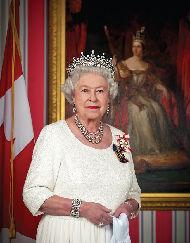 A rainha Elizabeth II posando em frente ao retrato da coroação de sua trisavó, a rainha Vitória. Elizabeth foi a soberana que por mais tempo reinou na história do Reino Unido e o segundo reinado mais longo da história depois de Cristo!
