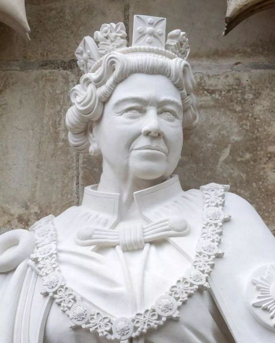 Detalhes do rosto da nova estátua da rainha!