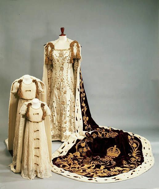 Traje usado por Mary de Teck, a matriarca da dinastia Windsor, na coroação de seu marido.