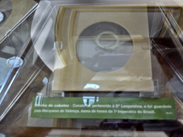 Mecha de cabelo exposta no Salão Nobre do Museu Paulista da USP (Ipiranga) – Consta ter pertencido à Imperatriz D. Leopoldina, e foi guardada pela Marquesa de Valença.