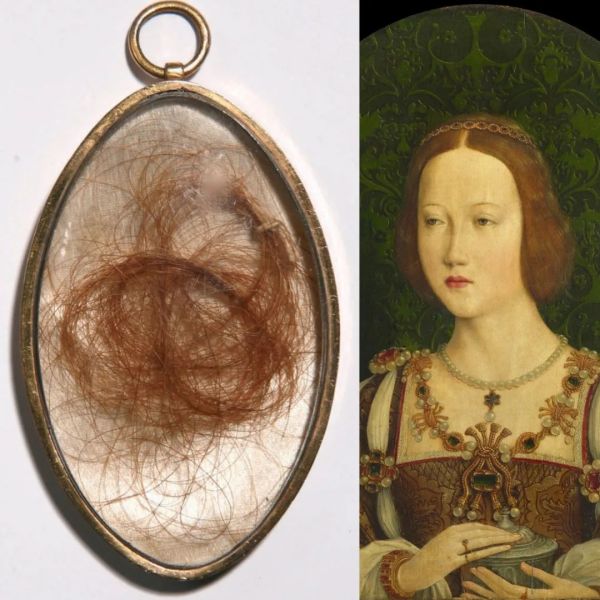 Um dos hábitos que foram se perdendo com o tempo consiste na prática de guardar fios de cabelo, oriundos de um ente querido. Era também comum se fabricar joias a partir desses pedacinhos do corpo, tais como broches, colares e pulseiras. Conhecidas como “joias de afeto”, elas eram utilizadas como uma lembrança de uma pessoa especial, estivesse ela viva ou morta! Também chamados de “mementos”, esses objetos guardavam consigo uma prova material da existência do sujeito. O que para nós hoje em dia pode parecer uma prática mórbida, era algo bastante corriqueiro entre as famílias aristocráticas, especialmente na realeza. A rainha Vitória do Reino Unido, por exemplo, fixava em seus trajes de viúva mementos de todos os seus familiares que haviam partido, enquanto Maria Antonieta da França gostava de presentear sua amigas com amuletos e anéis contendo alguns fios de sua vasta cabeleira loira. Uma série desses itens, porém, também foi fabricada durante o processo de exumação dos cadáveres de algumas rainhas, como no caso de Inês de Castro, Mary Tudor e Catarina Parr. Nessa matéria, selecionamos alguns mementos reais que ainda guardam a centelha da vida de algumas das princesas e soberanas mais famosas da história!