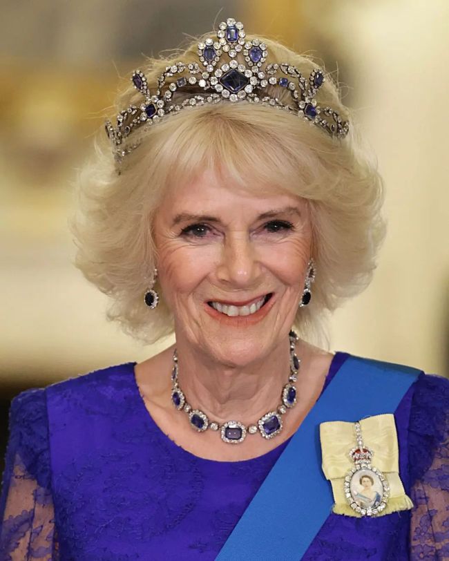 Como a nova rainha consorte, Camilla herdou uma grande quantidade de joias da sua sogra, incluindo esse conjunto de diamantes e safiras que Elizabeth II recebera de seus pais em 1947.