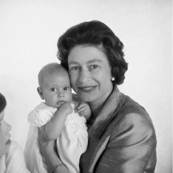 Fotografia da família real, tirada em 1965, durante o aniversário de 39 anos da rainha Elizabeth II. O pequeno príncipe Edward está no carrinho, enquanto seu irmão, Andrew, o empurra.