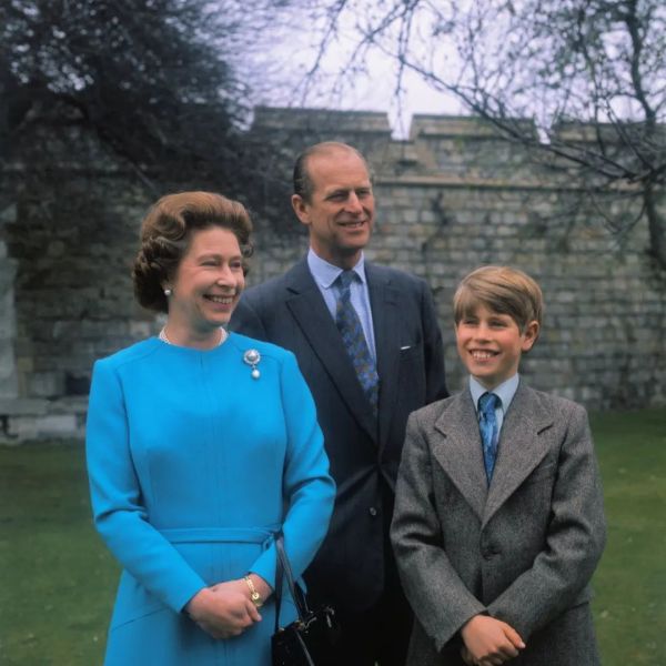A rainha Elizabeth II, Philip, duque de Edimburgo, e seus filhos: sentado à esquerda, o rei Charles III ( na época, príncipe de Gales). Atrás, da esquerda pra direita, Andrew, duque de York, Anne, princesa real, e Edward, então conde de Wessex. Agora, o filho mais jovem de Elizabeth e Philip assumiu o título e o tratamento que antes eram reservados ao seu finado pai.