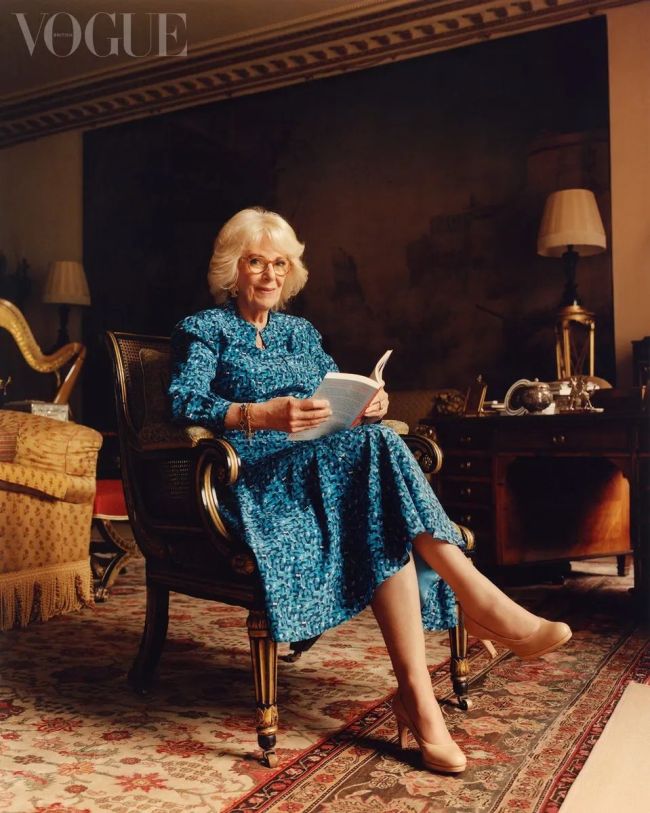Por ocasião do seu aniversário de 75 anos, Camilla posou pela primeira vez para a Vogue Britânica, um dos periódicos de moda mais famosos do mundo. As fotos foram feitas por Jamie Hawkesworth e a matéria foi publicada na edição de 18 de junho da revista. As imagens captam Camilla tanto em poses formais, quanto e momentos mais descontraídos, lendo um livro sentada com as pernas cruzadas numa poltrona, ou no jardim da Clarence House, onde ela atualmente vive com seu marido. Em entrevista concedida ao jornalista Giles Hattersley para a Vogue, a então duquesa falou dos últimos 20 anos de seu trabalho como membro da Casa Real e de seu apoio às causas sociais, especialmente com mulheres vítimas de violência doméstica, abuso sexual e estupro. Quando questionada se pretendia continuar abraçando seu trabalho social enquanto rainha consorte, ela foi assertiva na resposta: “Oh, vou continuar o máximo que puder”, disse ela. “Você não pode abandonar as coisas nas quais você está no meio. Há muitas coisas a serem feitas ainda”. Mãe de dois filhos com seu primeiro marido (de quem se divorciou em 1995), Camilla hoje é avó e afirma que parou de se importar com seus aniversários: “Eu os deixo ir e vir. Quero dizer, eu ficaria muito feliz em voltar no tempo”.