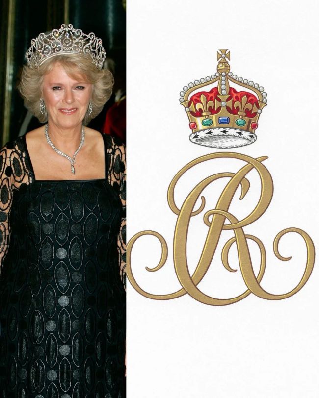 O monograma real da rainha Camilla do Reino Unido. O design apresenta as letras C e R entrelaçadas, de Camilla Regina (Rainha em Latim). Em cima, a coroa que simboliza o status da nova soberana consorte, terceira mulher a ocupar esse posto na história da Casa de Windsor, seguindo a linha iniciada por Mary de Teck, esposa do rei George V (fundador da dinastia) e Elizabeth Bowes-Lyon, a rainha-mãe, esposa do rei George VI.