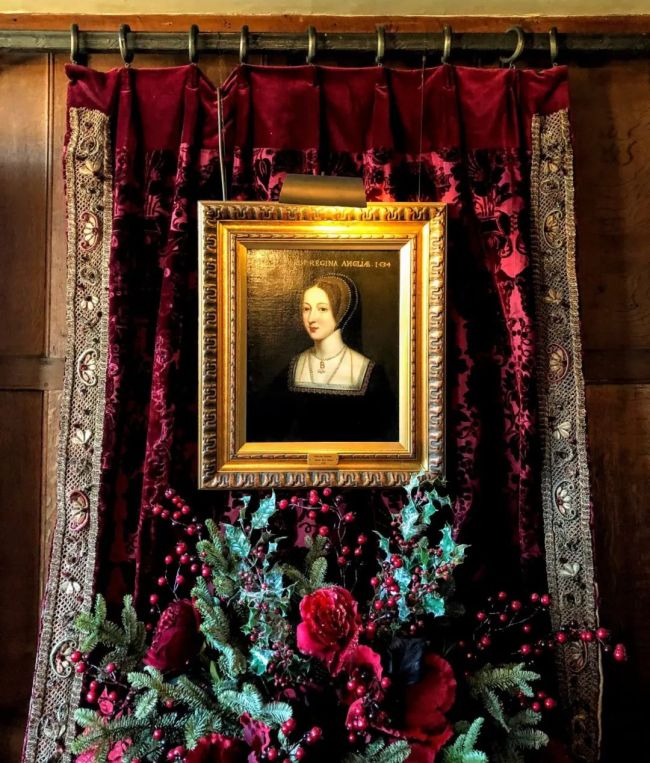 Com efeito, as paredes também foram decoradas com retratos póstumos da rainha, cortinados e um esboço original feito por Hans Holbein, o Jovem, que se acredita ser uma representação de Sir Thomas Bolena. Igualmente interessante é a porta em madeira de carvalho, que dá acesso a uma escadaria circular, próxima da cômoda com o painel de cortinas em veludo carmesim, que servem de moldura para o retrato da mãe da rainha Elizabeth I. O castelo de Hever também possui uma das maiores coleções de arte do período Henriquino, como dois livros de oras que pertenceram à segunda esposa do monarca, contendo sua assinatura e frases rabiscadas por ela nas margens dos textos sagrados. Segundo se conta, antes de morrer a vítima dividiu os poucos objetos que estavam em sua posse entre as dama que a acompanharam nos dias de encarceramento. Em meio a esses itens, havia um livro de orações em tamanho de bolso, que atualmente se encontra em exposição no castelo de Hever. Nas páginas ilustradas da obra, uma inscrição escondida: “Lembre-se de mim quando estiver orando” e “que a esperança o guie no dia-a-dia”.
