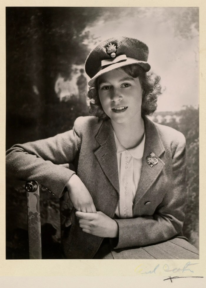 A princesa Elizabeth em trajes militares, por Cecil Beaton.