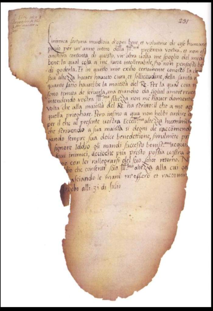 Fragmento da carta da princesa Elizabeth para Catarina Parr, datada de 31 de julho de 1544.