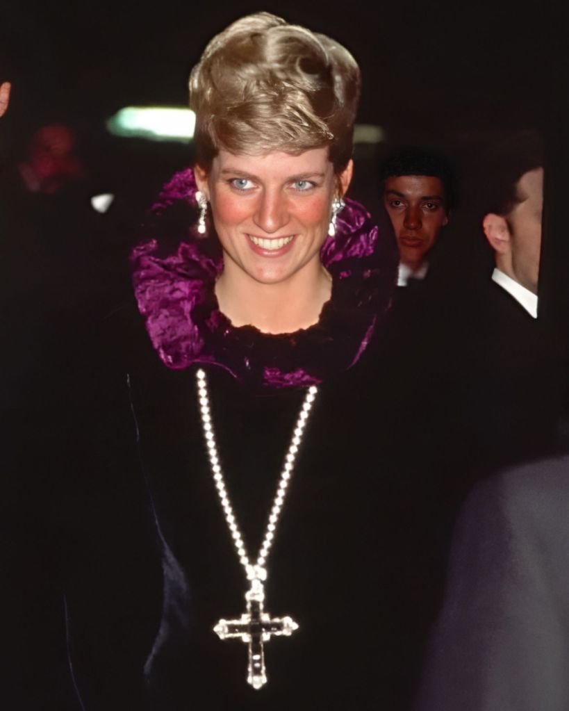 Diana adaptou o crucifixo a um traje desenhado por Catherine Walker, que lembra as roupas de Mary Stuart, a trágica rainha dos Escoceses.
