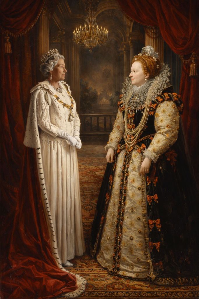 Tanto Elizabeth I quanto Elizabeth II descendiam do rei Henry VII, fundador da Dinastia Tudor, que surgiu vitoriosa com o término da Guerra das Duas Rosas, em 1485. 432 anos depois, o avô de Elizabeth II, o rei George V, também fundou uma Casa Real, mudando o nome da Dinastia de Saxe-Coburgo-Gota para Windsor, a partir das cinzas da Primeira Guerra Mundial. Seu objetivo era aproximar mais a monarquia dos seus súditos. Os Tudor permaneceram no trono por 118 anos, enquanto os Windsor possuem 109 de tradição. Enquanto os primeiros governavam de fato, os segundos apenas reinam, devido à Revolução Parlamentar ocorrida no século XVII.